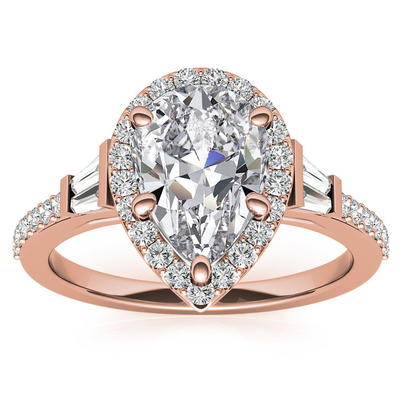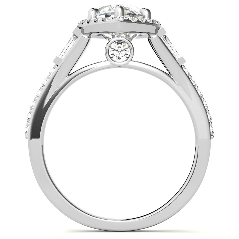 #enr659-pear Pear Moissanite & Baguette Diamond Halo Engaement Ring