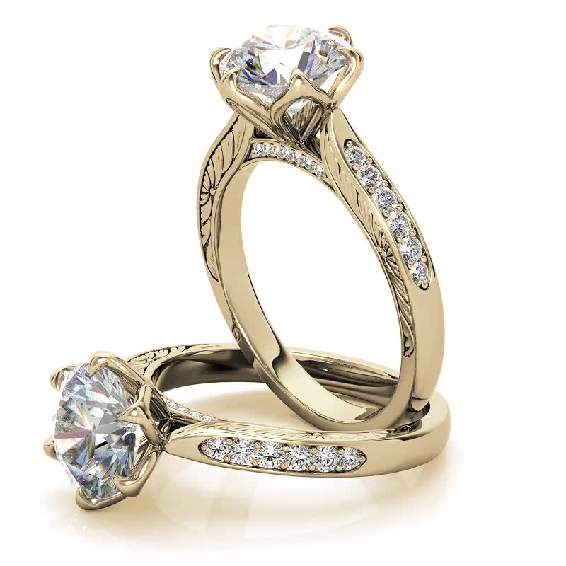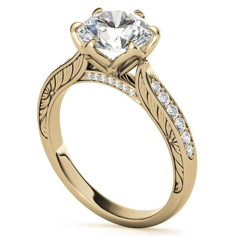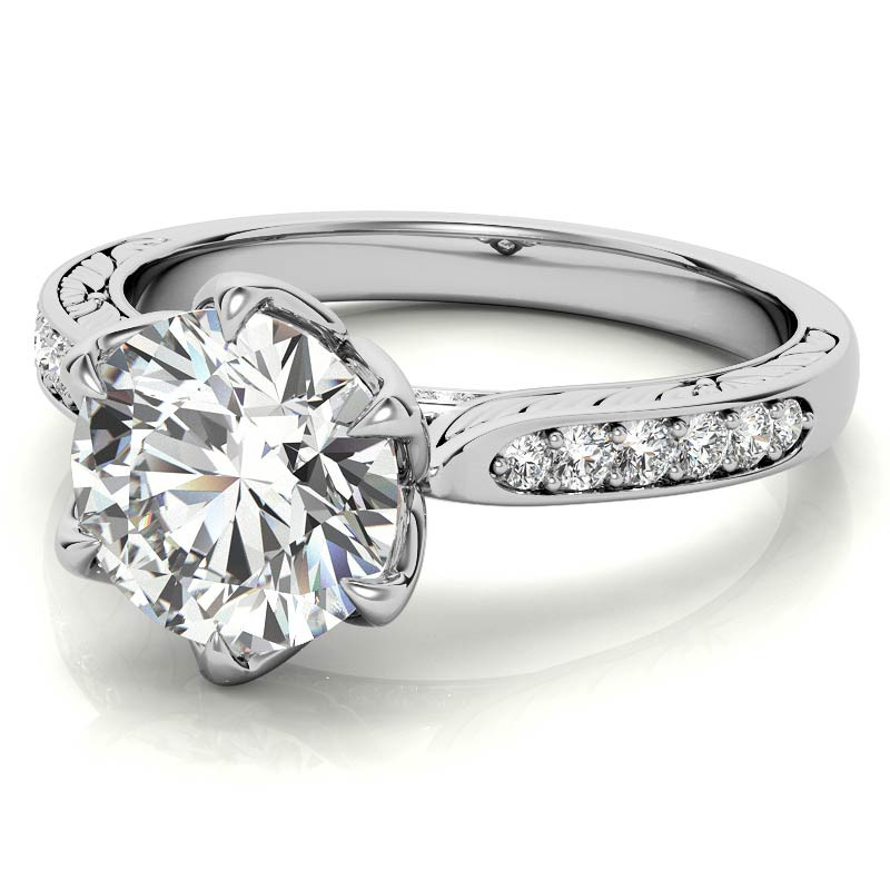 #enr671 Round Brilliant Moissanite Etched Tulip Engagement Ring