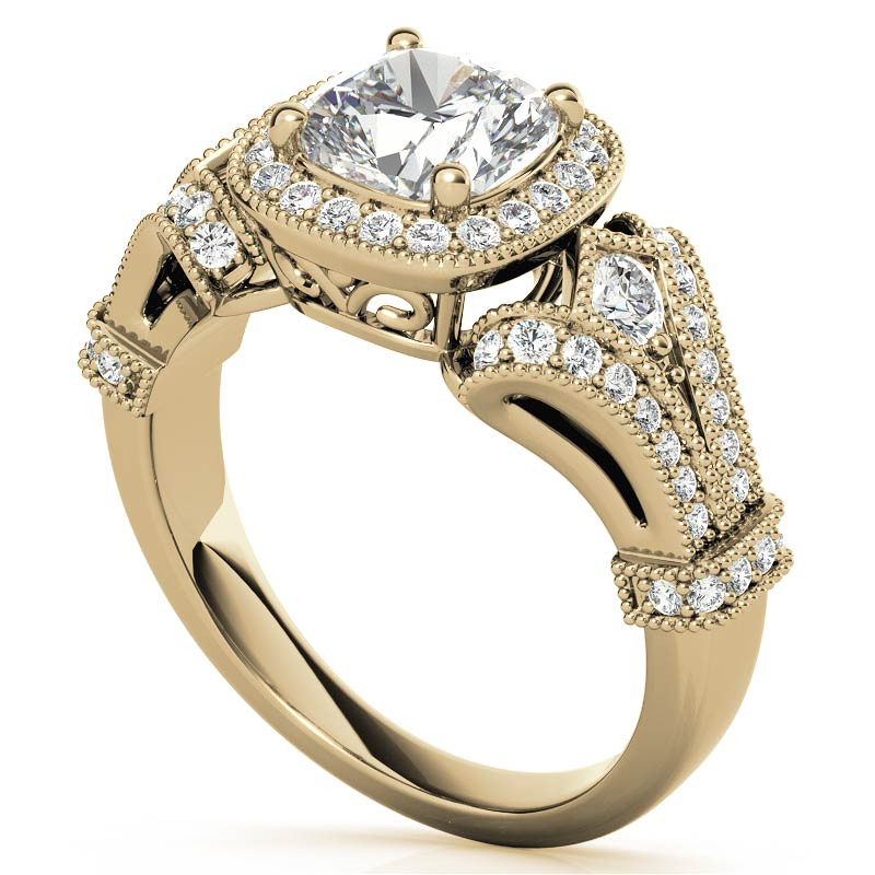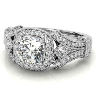 #enr690 Antique Halo Cushion Moissanite Engagement Ring
