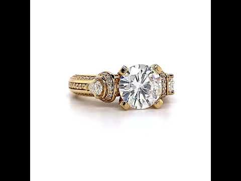 #enr692 Round and Pear Moissanite 3-Stone Ornate Engagement Ring