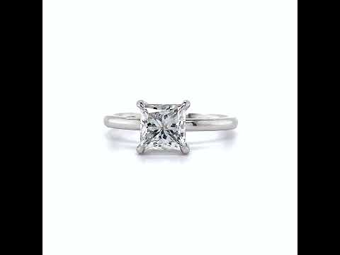 #enr702-pr Princess Moissanite Solitaire Ring with Hidden Halo and Plain Band