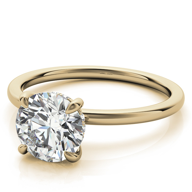 #enr702 Round Brilliant Moissanite Solitaire Ring with Hidden Halo and Plain Band