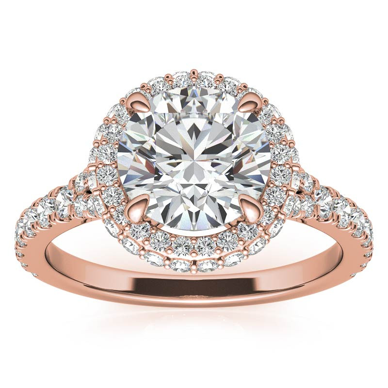 #enr714 Cathedral Halo and Side Halo Round Brilliant Moissanite Engagement Ring