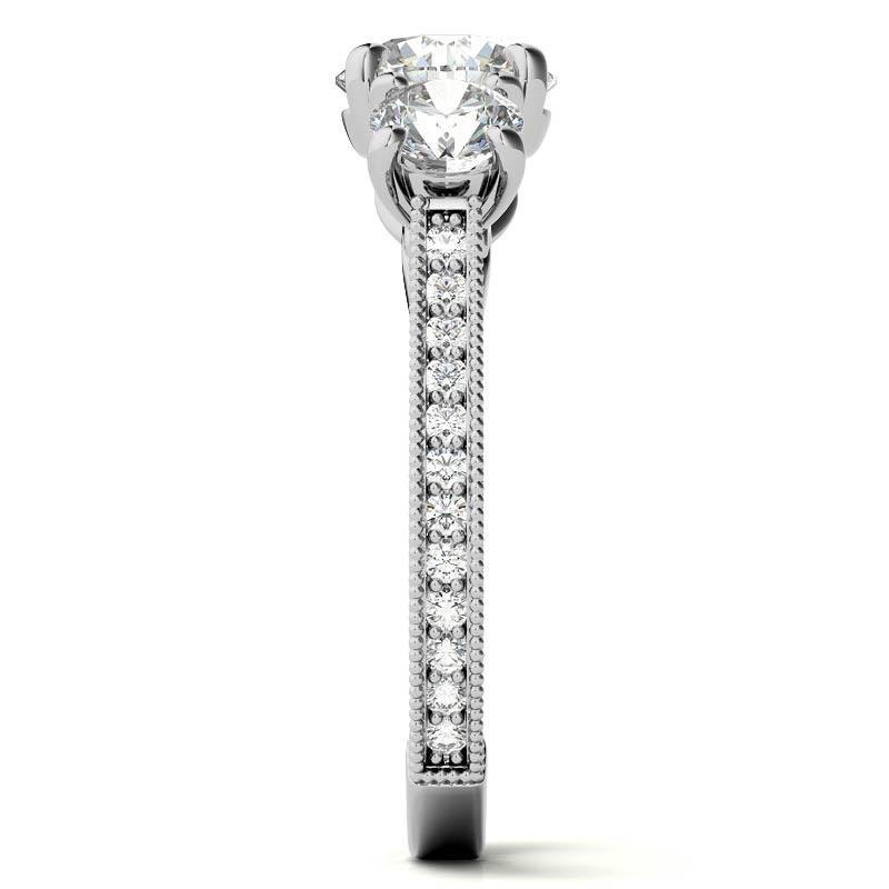 Featuring Side Stones, Three Stone, Antique, Cathedral, Scroll, Milgrain and Surprise Diamond from our Engagement Rings collection. Model #enr719 is available in 46 brilliant center stone options, 2 fine sidestone options, and your choice of 6 eco-friendly precious metals.