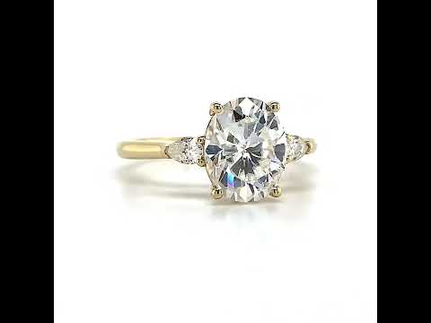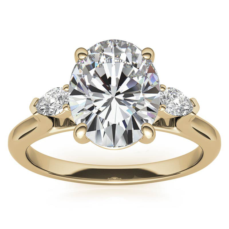 #enr742-ov Oval and Pear Three-Stone Moissanite Engagement Ring