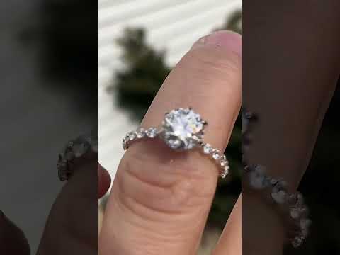 This stunning Moissanite engagement ring is available in your choice of 14k gold, 18k gold, or platinum, allowing you to create a truly personalized piece that reflects your unique style.