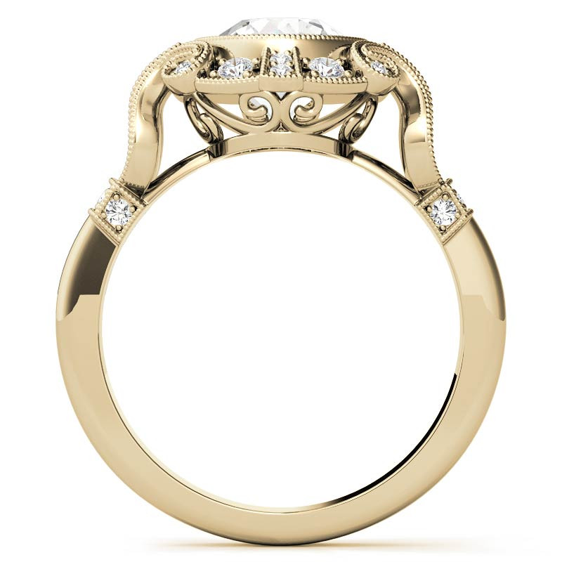 Featuring Side Stones, Scalloped Band, Halo, Antique, Bezel, Cathedral, Scroll and Milgrain from our Engagement Rings collection. Model #enr763 is available in 54 brilliant center stone options, 2 fine sidestone options, and your choice of 6 eco-friendly precious metals.