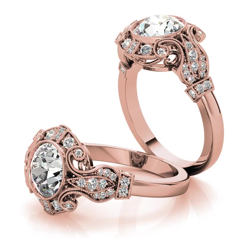 #enr763 Antique Style Bezel Round Brilliant Moissanite Engagement Ring with Milgrain