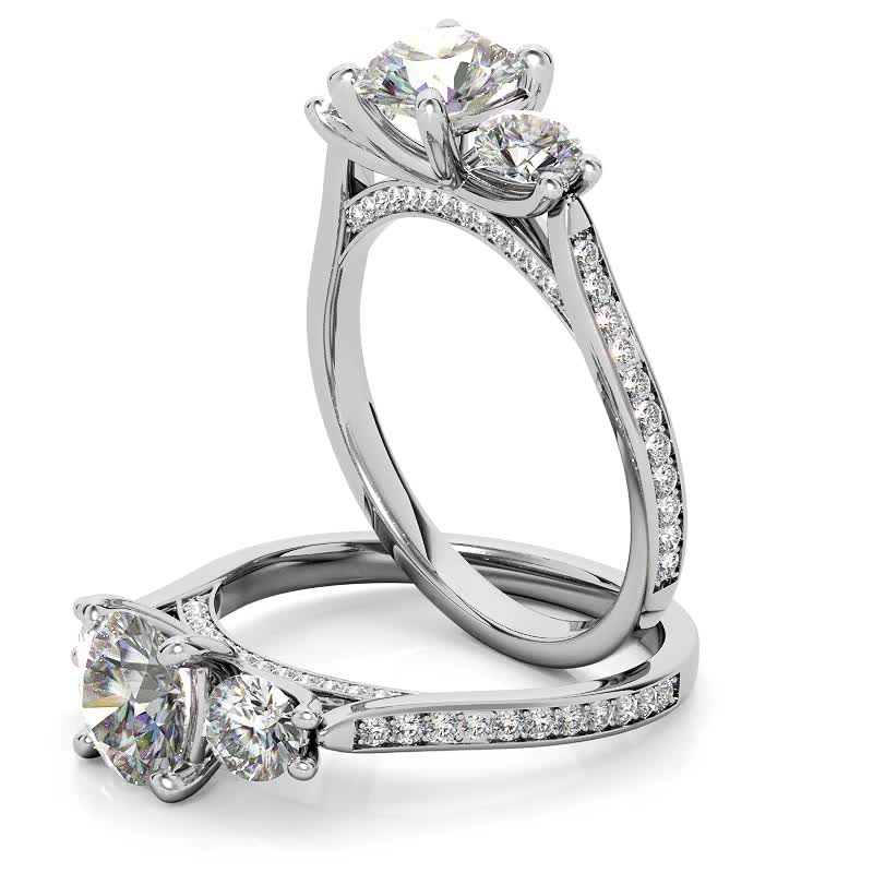 Featuring Side Stones, Three Stone, Cathedral and Trellis from our Engagement Rings collection. Model #enr772 is available in 61 brilliant center stone options, 2 fine sidestone options, and your choice of 6 eco-friendly precious metals.