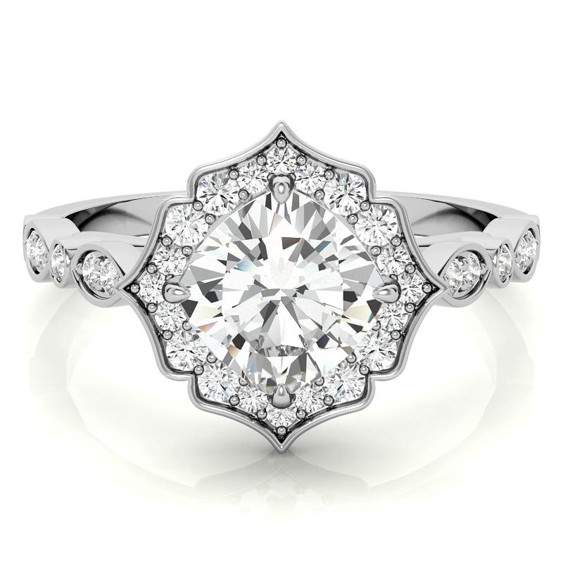 Featuring Side Stones, Scalloped Band, Halo, Antique and Cathedral from our Engagement Rings collection. Model #enr798-cu is available in 44 brilliant center stone options, 2 fine sidestone options, and your choice of 6 eco-friendly precious metals.