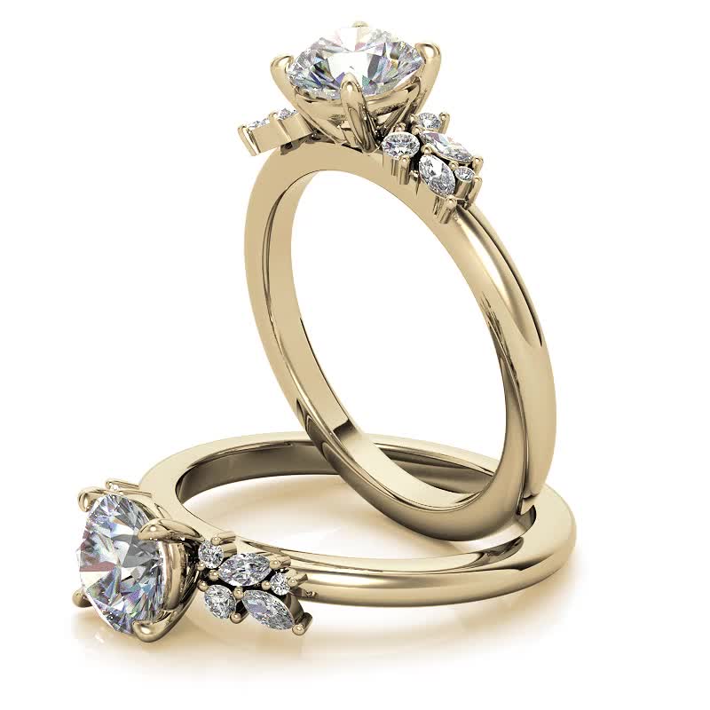 #enr805 2mm Round and Marquise Petite Cluster Moissanite Engagement Ring