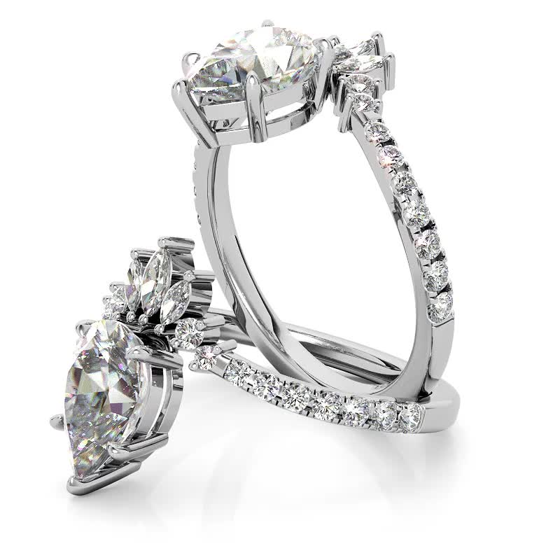 #enr811-pear Unique Pear and Marquise Accented Moissanite Engagement Ring