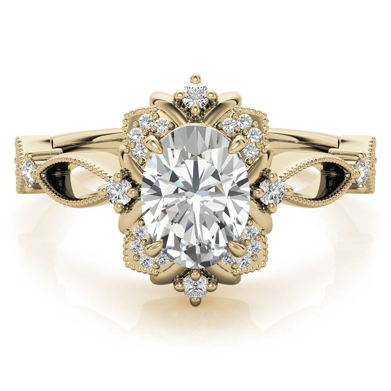 #enr833-ov Split Shank Antique Oval Halo Moissanite Engagement Ring