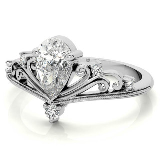 #enr834-pear Crown Inspired Chevon Shaped Pear Moissanite Engagement Ring