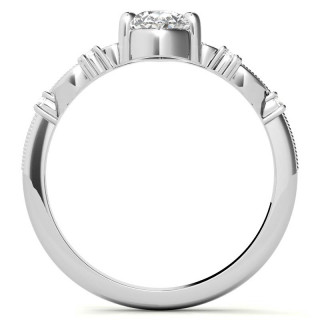 Experience the allure of vintage-inspired design with our exquisite Moissanite engagement ring. The stunning antique tiara style is highlighted by intricate milgrain detailing and scroll flourishes, perfectly complementing the pear cut Moissanite center stone.