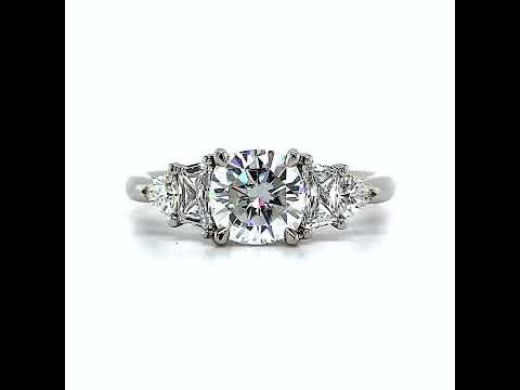 #enr837-cu Cushion and Trapezoid Moissanite 3-Stone Engagement Ring