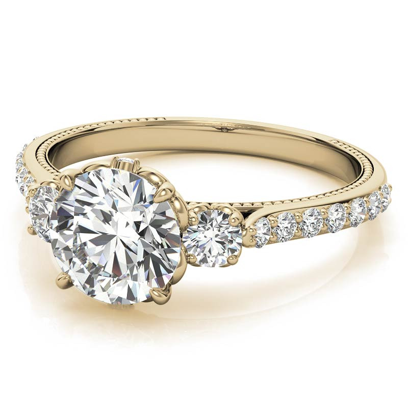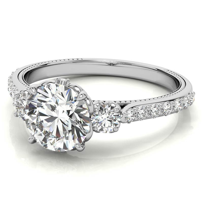 Featuring Side Stones, Three Stone, Antique, Scroll, Milgrain and Surprise Diamond from our Engagement Rings collection. Model #enr841 is available in 61 brilliant center stone options, 2 fine sidestone options, and your choice of 6 eco-friendly precious metals.