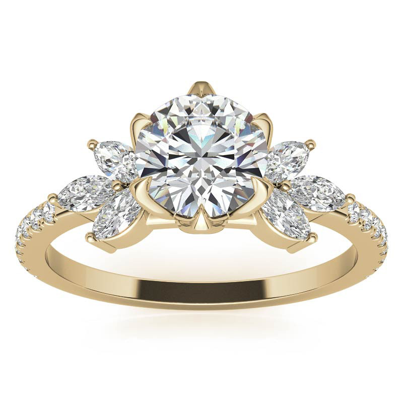 #enr844 Round and Marquise Accented Moissanite Engagement Ring with Tulip