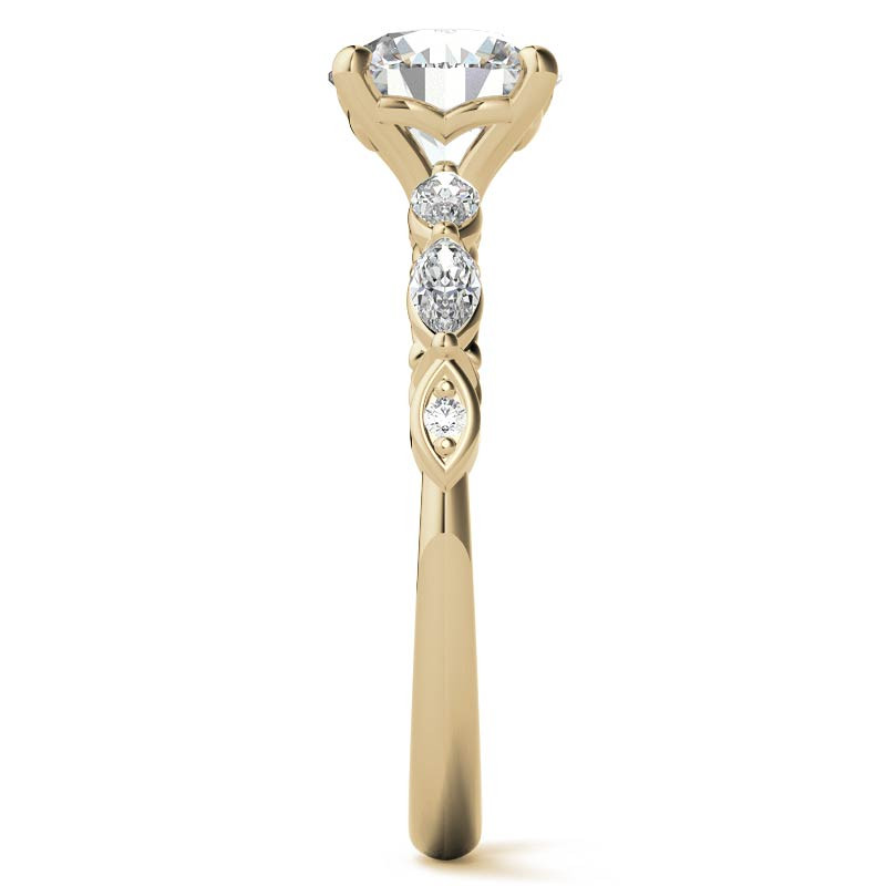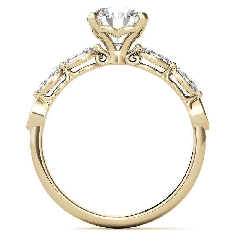 #enr862 Single Shared Prong Marquise and Round Brilliant Moissanite Scroll Engagement Ring