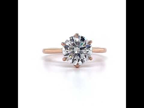 Enhancing its magnificence, the round brilliant Moissanite rests gracefully within a six-pronged trellis setting. Immerse yourself in the artistry of choice, as this setting can be cast in your preferred precious metal. Opt for the lustrous allure of 14k gold, the opulent elegance of 18k gold, or the enduring beauty of platinum. Each metal choice adds its unique touch, accentuating the ring's innate charm.