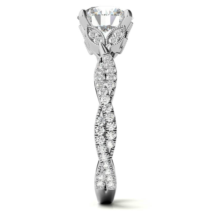 #enr865 Leaf Accent Infinity Style Round Brilliant Moissanite Engagement Ring
