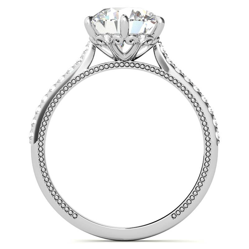 #enr873 6-prong Round Vintage Moissanite Engagement Ring with Milgrain