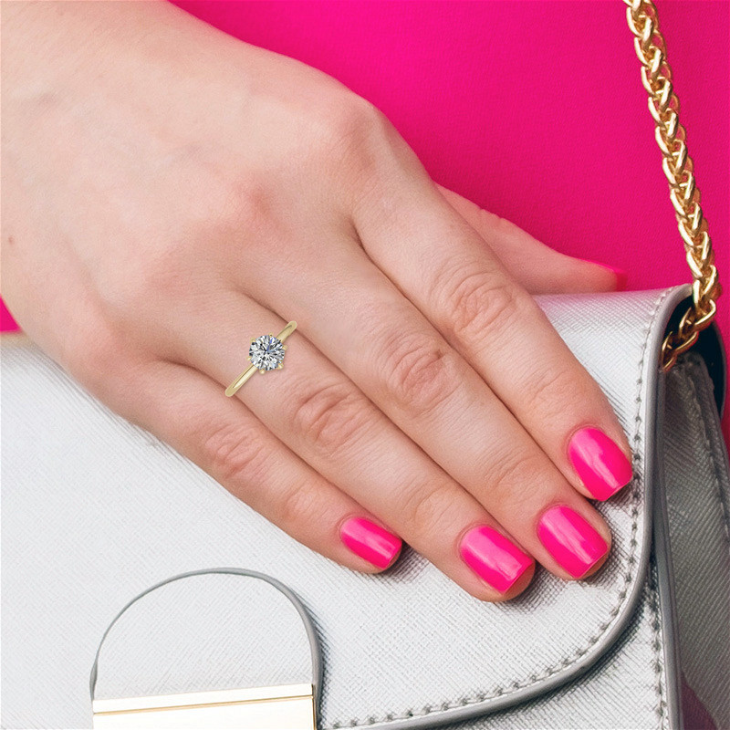 #enr879 Petite 6-Prong Round Brilliant Moissanite Solitaire Ring