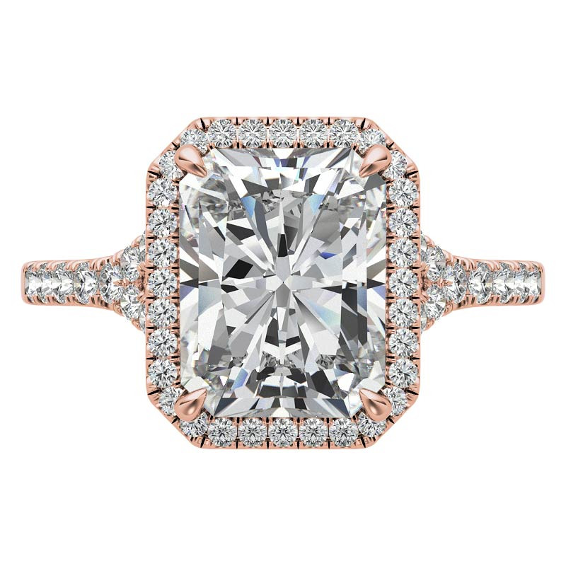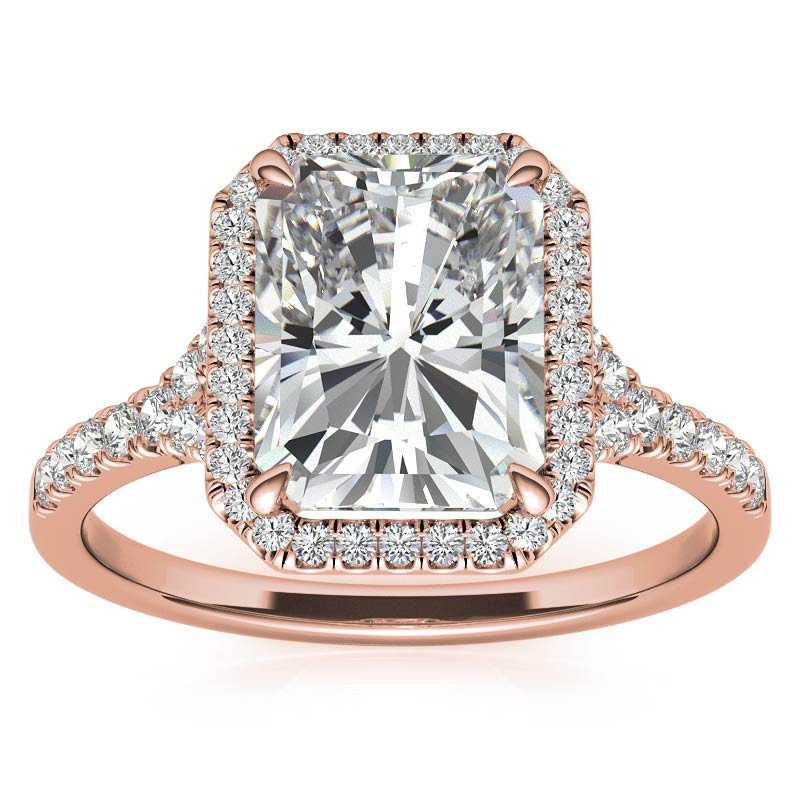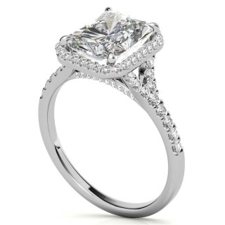 #enr889-em Emerald / Radiant Moissanite Split Shank Halo Engagement Ring