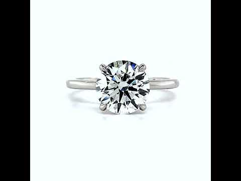 This gorgeous engagement ring showcases a round brilliant Moissanite center stone, stunningly mounted on a plain band with claw-shaped prongs. The prongs offer the perfect blend of elegance and durability, ensuring that the center stone remains securely in place. Additionally, the ring features a hidden halo collar design, intricately wrapped around the prongs, which beautifully complements the center stone with 0.08ct - 0.14ct of round Moissanite side stones.