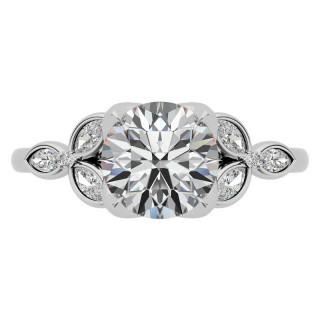 Immerse yourself in the enchanting beauty of our exquisite engagement ring, boasting a captivating floral band design. Delicate petal shapes gracefully embrace six 3x1.5mm/0.04ct marquise cut accent stones, meticulously bezel set to enhance their mesmerizing allure.