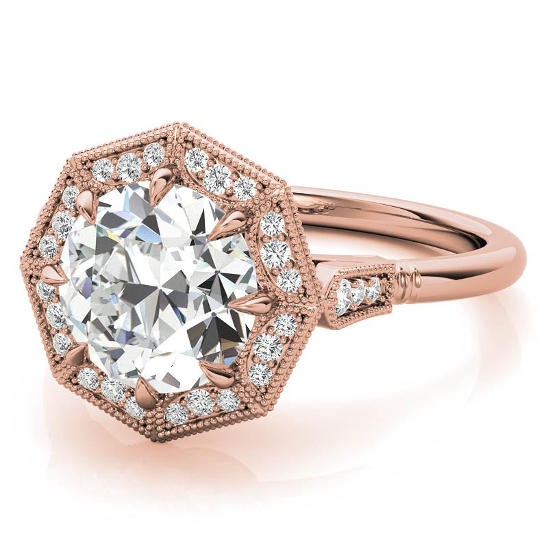 #enr907 Antique Style Octagon Halo Round Brilliant Moissanite Cathedral Engagement Ring