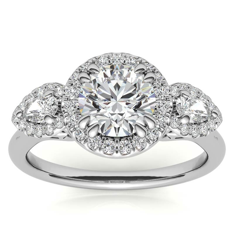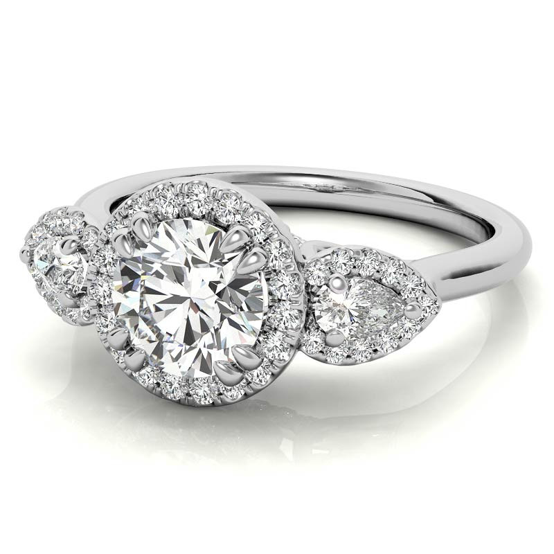#enr912 Round and Pear Halo 3-Stone Moissanite Engagement Ring