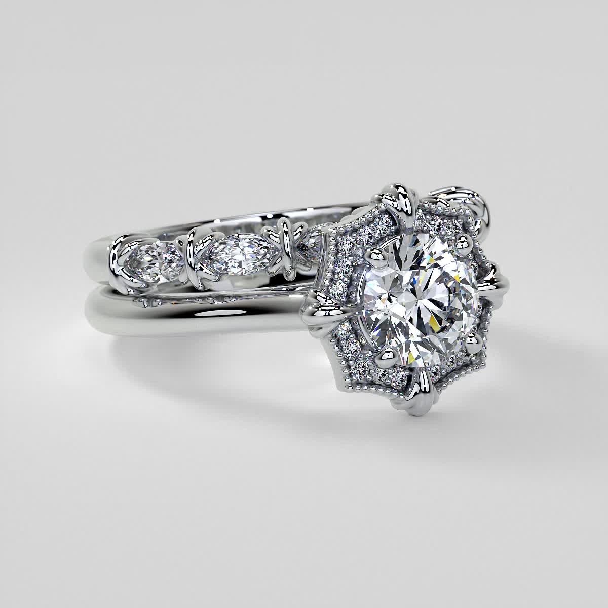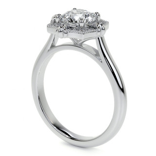 #enr958 Round Brilliant Moissanite Octagon Halo Engagement Ring with Milgrain