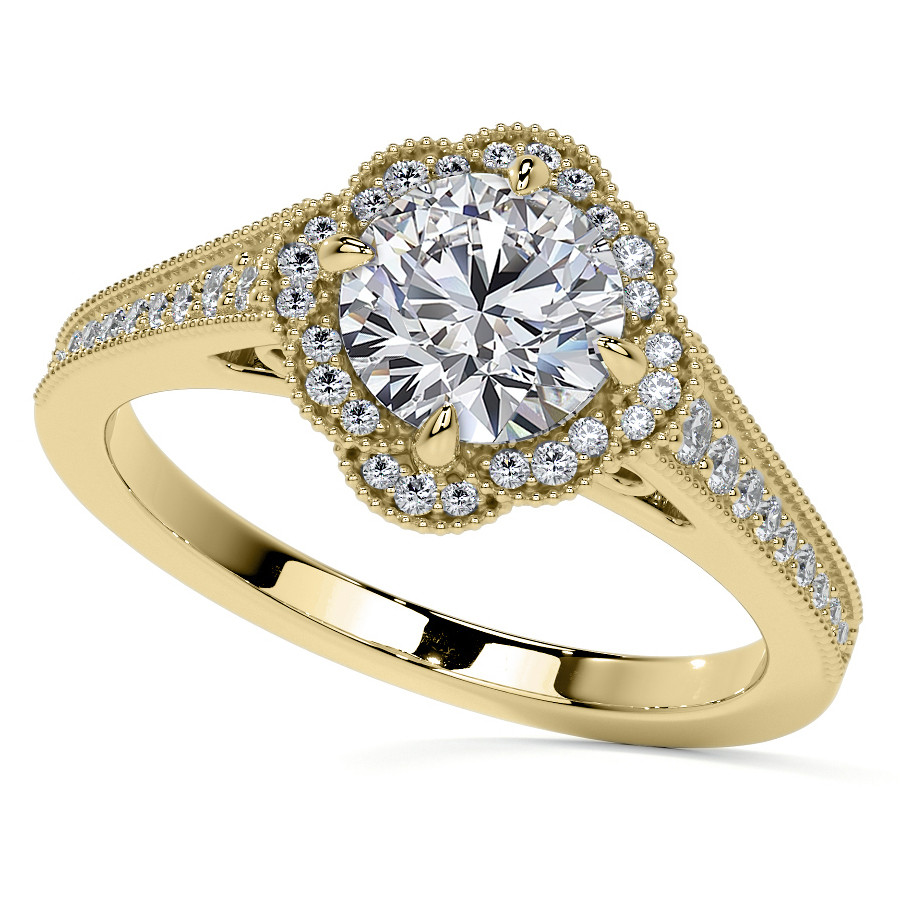 #enr960 Round Antique Style Halo Moissanite Cathedral Engagement Ring