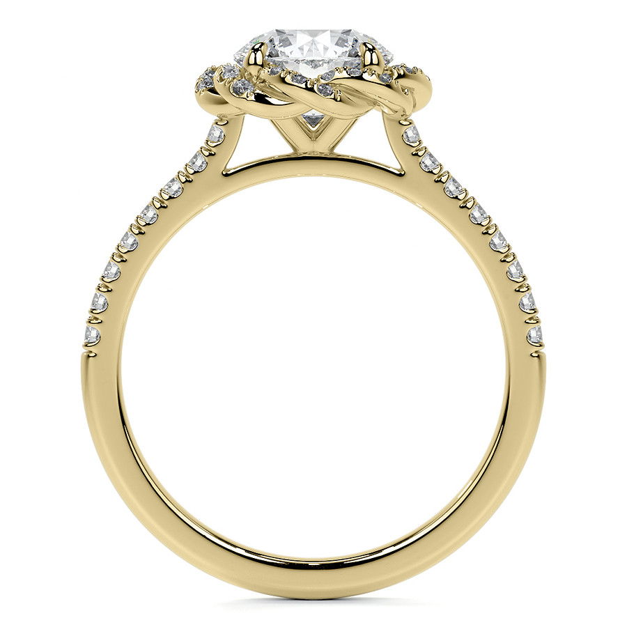 #enr966 Twisted Halo Round Brilliant Moissanite Cathedral Engagement Ring