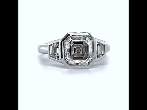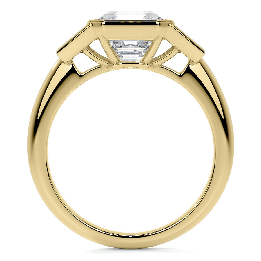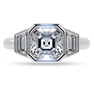 #enr976-ash Asscher and Trapezoid Bezel Set Three-Stone Moissanite Engagement