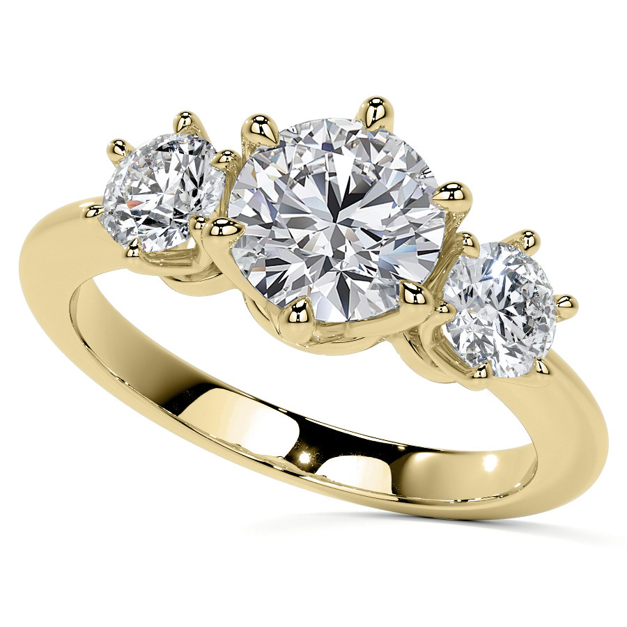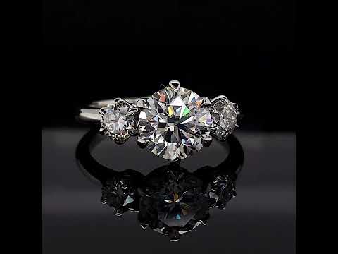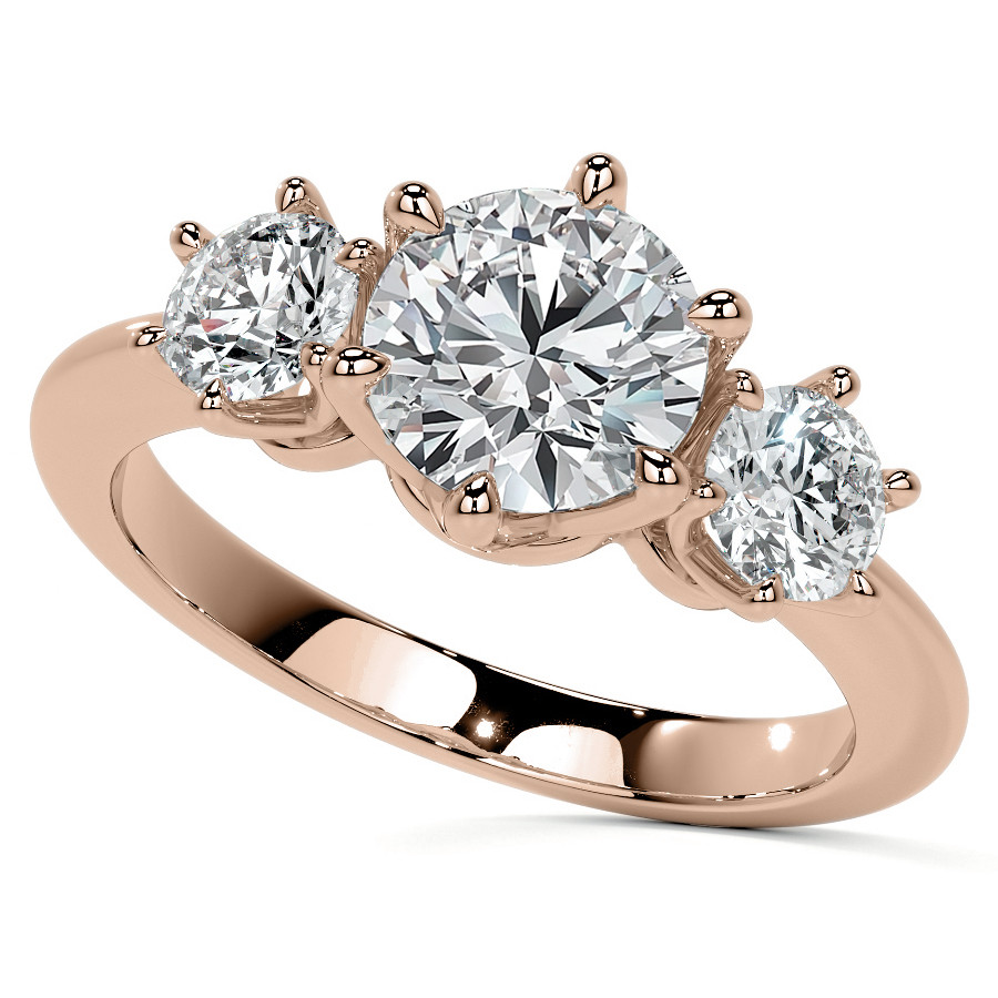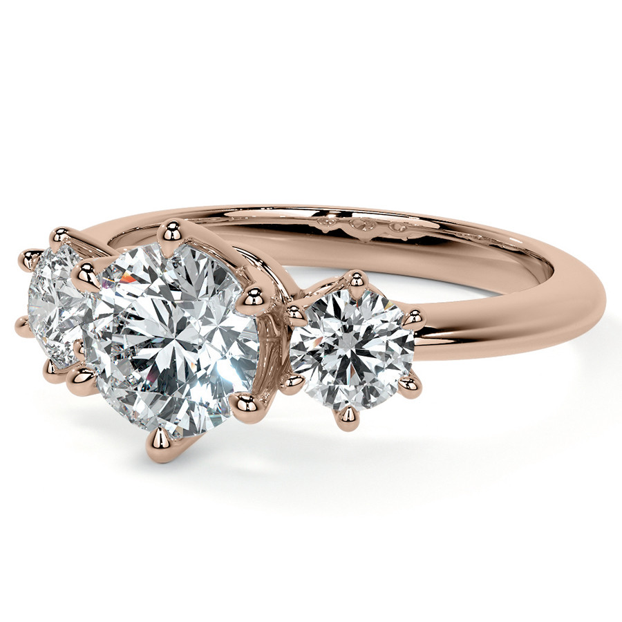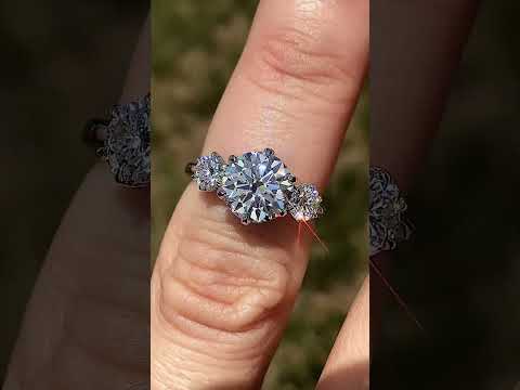 The center stone takes center stage, allowing you to personalize your ring by selecting the size and quality that best resonates with your vision. Flanking the center stone are two equally enchanting side stones, measuring 4.5mm/0.33ct each, which add balance and symmetry to the overall composition.