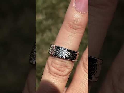 This beautiful men's plain band is cast in Cobalt and features a hammered design, a 7mm band width, and a brushed finish on the center with a high polish finish on the outer edges and inside of the band.