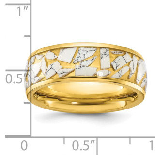 #mband425 Titanium Polished Yellow IP-plated with Ceramic Fragments Inlay 8mm Band