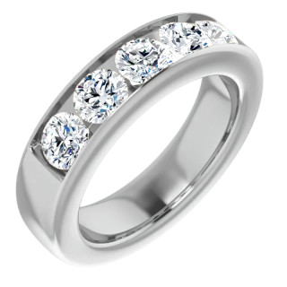5 Channel Set 5mm Round brilliant cut Moissanite set in 14k gold, 18k gold or platinum. The band width at ~6.3mm at the base of the ring and ~6.3mm at its widest point.