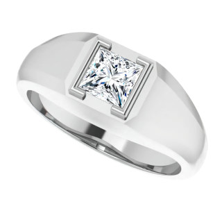 #mens220-pr 5mm/0.80ct Princess Half Bezel Set Moissanite Mens Ring