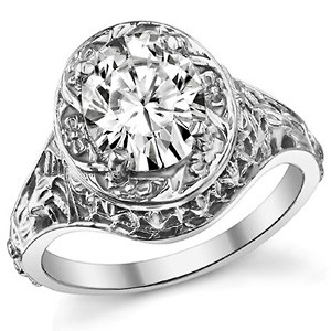 This beautiful antique reproduction filigree ring is designed with a 10x8mm / 3ct oval cut Moissanite center stone.