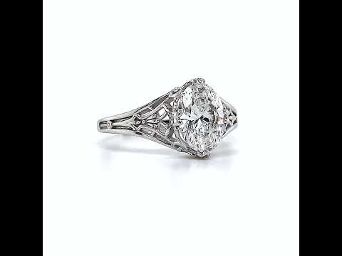 This beautiful antique reproduction filigree ring is designed with an 8x6mm, 1.5ct oval cut Moissanite center stone.