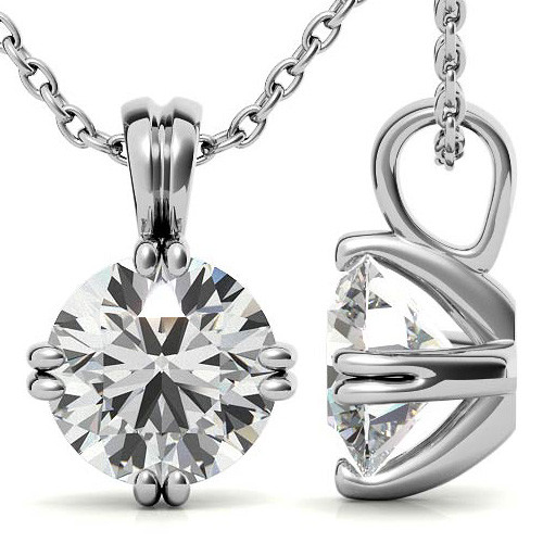This beautiful Moissanite pendant features a double-prong design set with a round brilliant cut Moissanite gemstone.