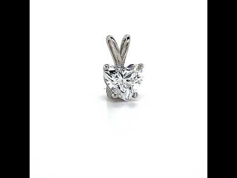 This beautiful Moissanite pendant features a 4-prong floating solitaire design, set with a round cut colorless Moissanite gemstone in 14k white or yellow gold.