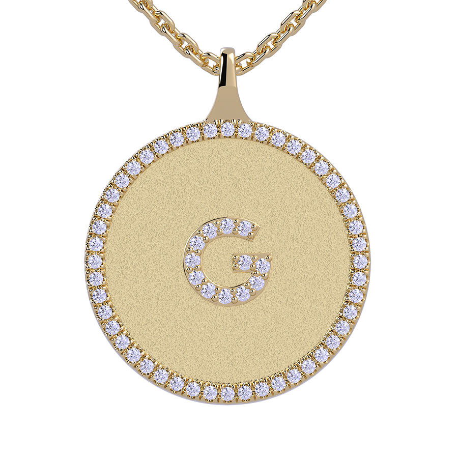 #pen502-g G - Initial Diamond Medallion Pendant