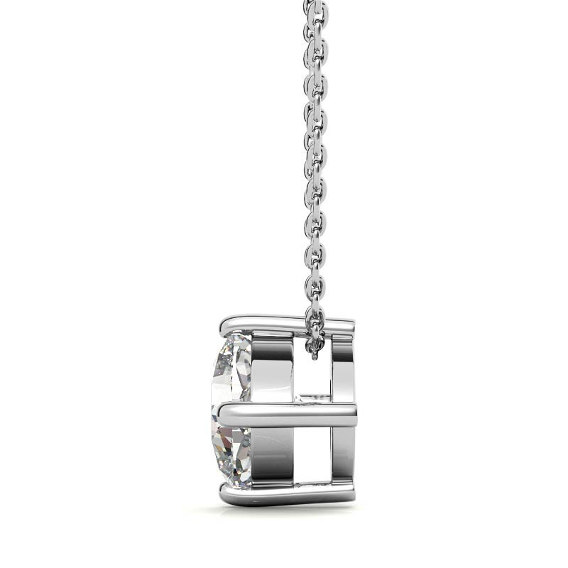 This beautiful Moissanite pendant features a cushion cut colorless Moissanite gemstone in 14k white gold.