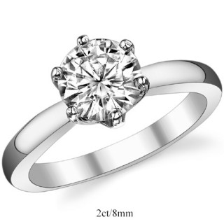 The beautiful Moissanite solitaire features a solstice design. It is available in 14k gold with a round brilliant Moissanite ranging from 0.5ct/5mm to 4ct/10mm.