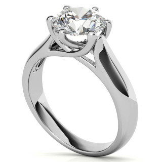 The beautiful Moissanite solitaire features a 6-prong trellis/lucida design. It is available in 14k gold, 18k gold or platinum with a round brilliant Moissanite center stone ranging from 0.5ct/5mm to 4ct/10mm.