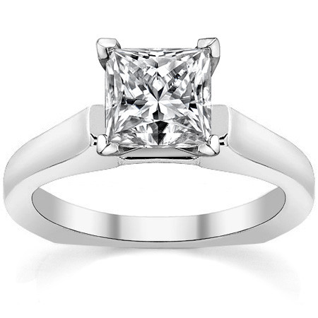 Princess Shank Moissanite solitaire ring. Available in 14k gold, 18k gold or platinum. Choose your center stone using the drop down menu below. It can be set with a 4 or 6-prong center stone.